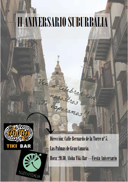 Suburbalia ya está preparando su evento para conmemorar su segundo aniversario, el lugar escogido esta vez será el “Aloha” calle Bernardo de la Torre, número 5. En lo que pretende sea un lugar de encuentro entre los artistas, personalidades de la cultura canaria, y amantes del arte.
