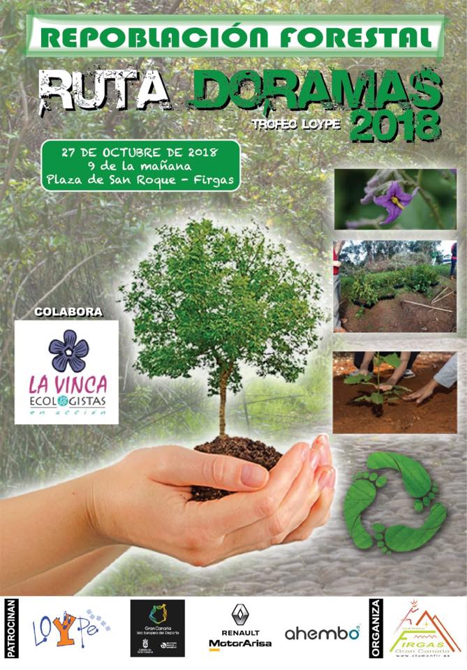 Por décimo año consecutivo, y como compensación a la HUELLA ECOLÓGICA de la carrera por montaña RUTA DORAMAS – Trofeo Loype en los Espacios Naturales Protegidos del Parque Rural de Doramas y especialmente, en la Reserva Natural Especial de Azuaje, se llevará a cabo por parte del Club de Montaña de Firgas – CLUMONFIR, organizadores de La Ruta Doramas, una repoblación forestal con especies de monteverde en las laderas sur y suroeste de la Montaña de Firgas, contando con la colaboración del colectivo LA VINCA Ecologistas en Acción y del Ayuntamiento de la Villa de Firgas.