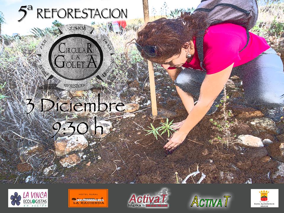Tras la exitosa celebración el pasado mes de septiembre de la V Circular La Goleta, la asociación deportiva ‘ActívaT’, en colaboración con el colectivo La Vinca Ecologistas en Acción, el grupo de empresas Marquesado de Arucas y el Ayuntamiento de Arucas, organizará el domingo 3 de diciembre de 2017, a las 9.30 horas, la iniciativa denominada “Reforestación y Regado – Huella Ecológica V Circular La Goleta”.