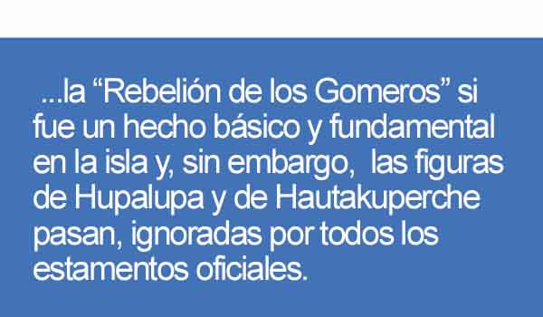 No creo que haya que ignorar el paso de Colón por esta isla, pero si desmitificarlo y ponerlo en su auténtica dimensión. Para la historia real de nuestra Gomera no tiene más trascendencia que la de ser, durante un par de días, la parada y fonda de aquellos marinos, como lo fue posteriormente de la mayoría de los viajeros a Indias que aprovechaban su excelencia como puerto sin igual en esa época en este archipiélago. Por poner un ejemplo de contraste, la “Rebelión de los Gomeros” si fue un hecho básico y fundamental en la isla y, sin embargo, las figuras de Hupalupa y de Hautakuperche pasan, ignoradas por todos los estamentos oficiales. Colón tiene ya dos estatuas en la Calle Real que, con la del Padre Torres Padilla constituyen todo el acervo escultórico público de la Villa capital ¿Y de los héroes gomeros, qué? ¿Para cuándo? Recuerdo que, año tras año, el Centro “Amílcar Cabral” solicitaba una calle para cada uno de estos dos héroes gomeros hasta que, por mediación de Erasmo de Armas se consiguió que unas escalonadas y empinadas callejuelas, de UNA SOLA CASA por cada lado, muy cerca del Cuartel de la Guardia Civil, llevaran el nombre de los próceres que se enfrentaron a la tiranía brutal de los Peraza y la Bobadilla. A Hautakuperche, como les sonaba subversivo, le españolizan el nombre a Huatacuperche.