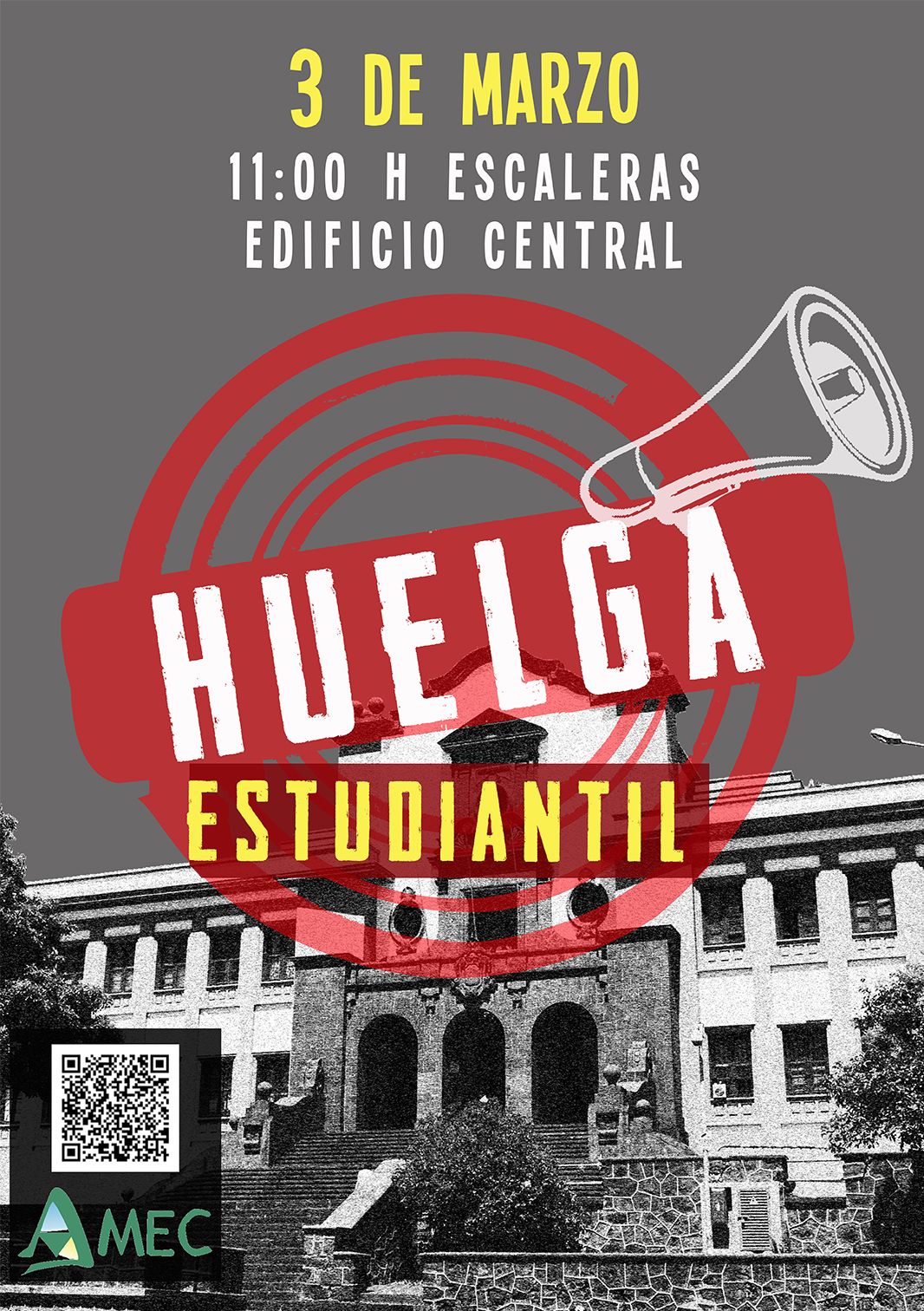 Finalmente, el colectivo estudiantil espera que la huelga del día 3 sea ampliamente secundada por el alumnado de la ULL. AMEC entiende que se debe hacer un esfuerzo por reactivar la lucha por la educación pública en todos sus niveles”