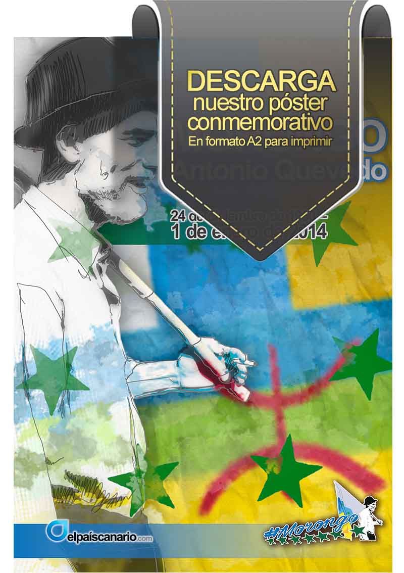 Desde El País Canario, en el quinto aniversario de su muerte, rendimos nuestro particular homenaje a Antonio Quevedo con la edición de un póster conmemorativo en gran formato y con el hashtag #Morongo, que utilizaremos a lo largo de este mes de enero en todas nuestras publicaciones.