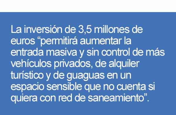 La prensa ha recogido estas últimas semanas el anuncio de la construcción de una vía de entrada al Monumento Natural del Barranco de Guayadeque, que pretende bordear la parte alta del casco urbano de Agüimes. La inversión de 3,5 millones de euros “permitirá aumentar la entrada masiva y sin control de más vehículos privados, de alquiler turístico y de guaguas en un espacio sensible que no cuenta si quiera con red de saneamiento”. La intención es que accedan más turistas al barranco. No hay un solo estudio sobre la capacidad de carga del espacio ni de los impactos inducidos por esta sobrecarga. En este sentido, “los vecinos y vecinas residentes se han quejado desde hace años de vivir prácticamente dentro de un área recreativa, donde las limitaciones de uso son todas para ellos y no para los visitantes y la Administración responsable de la adecuada gestión”.
