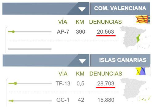 El radar de la DGT en la TF-13 recauda un 40% más que el que más recauda de la Comunidad de Valencia (5 millones de habitantes)