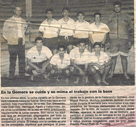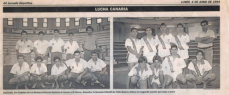 El trabajo se estaba haciendo apropiadamente. En los juegos escolares de 1994 los cadetes gomeros dieron la sorpresa venciendo a una isla de tradición luchística como El Hierro por 25 a 11 en la modalidad 6 contra 6. La prensa especializada se hizo eco de tal hecho: “La Gomera hace historia” titulaban y aseveraban sobre “el progreso evidenciado” y el “buen trabajo”. Culminaba uno de los artículos con la siguiente profecía “la lucha en la isla colombina tiene futuro y por consiguiente necesita apoyo”.