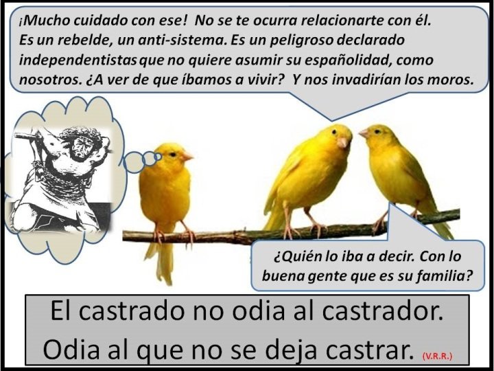 Evidentemente no vamos a poder entrar en la mentalidad del canario españolizado asimilado y aculturado hasta su propia simiente en su concepto ficticio de creerse igual a un español y que sin duda tampoco debemos dar por imposible, ya que las tornas mentales son cambiantes y como dice el dicho » burro cargado busca camino».