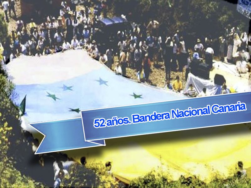 El próximo 22 de octubre conmemoraremos el 52 aniversario de nuestra libertaria bandera, la tricolor (blanco, azul celeste y amarillo) con 7 estrellas verdes, representando cada una de las islas que constituirán la cada vez más próxima República Democrática Federal Canaria.