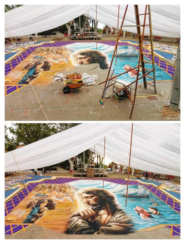 Un año más hemos vuelto a disfrutar del arte efímero en la plaza del Cristo de Tacoronte con motivo del Corpus Christi. El artista Juan Fajardo lleva treinta y siete años esparcimiento arena sobre la superficie de la plaza tacorontera en múltiples manifestaciones.