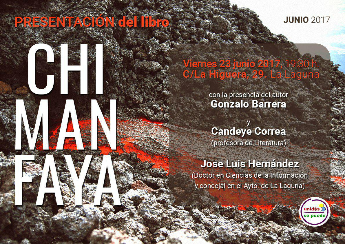 El viernes 23 de junio a partir de la 19:30 horas en la calle La Higuera Nº29 tendrá lugar la presentación del libro Chimanfaya del escritor gomero Gonzalo Barrera Rodríguez