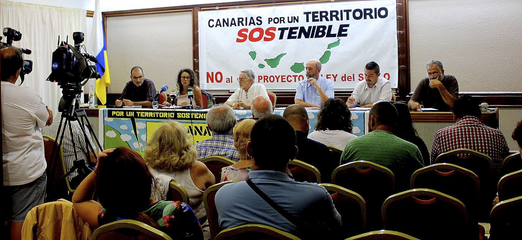 Finalmente, Julián Ayala, portavoz de Canarias por un territorio sostenible en Tenerife, recordó que las iniciativas jurídicas, sociales y políticas que se están iniciando se trasladarán como experiencia también a la lucha contra la Ley del Suelo, mientras que Antonio Pérez Marrero, portavoz de la citada plataforma en Gran Canaria, recordó precisamente que “la Ley del Suelo está comenzando a aplicarse a través de la Ley del turismo en las islas verdes”, como una avanzadilla de lo que pretender ser este nuevo modelo económico que se pretende imponer. Marrero recordó que una vez aprobadas las leyes, la movilización continúa porque puede detenerse su aplicación con argumentos jurídicos y políticos.