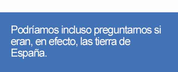 Ahora cogemos de nuevo el espejo, lo ponemos ante nosotros. Podemos preguntarnos si hubo una invasión, si realmente se trató de una reconquista, si el territorio era legítimamente cristiano, si las casas reales del norte eran herederas de los visigodos y si realmente la tristeza y la desolación cundió por las tierras de España. Podríamos incluso preguntarnos si eran, en efecto, las tierra de España. Podríamos preguntarnos muchas cosas, pero el espejo cambia de posición y nos da la luz a la altura de los ojos.