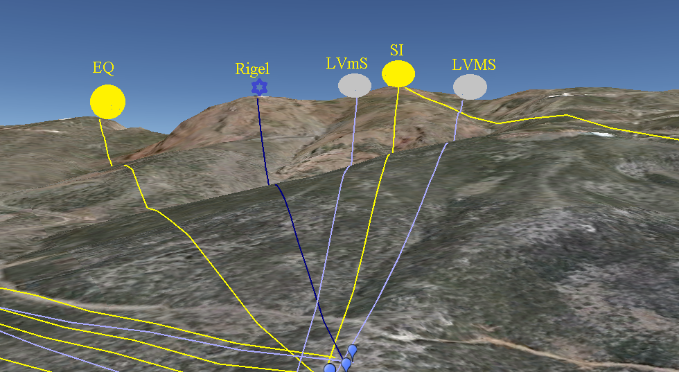 Algunas estrellas como Rigel despunta por el abrupto extremo Norte del Roque de Los Muchachos, durante el crepúsculo, pocos días antes del solsticio de invierno y se despide, en el amanecer, unos días después del solsticio de verano. Bastante significativo.