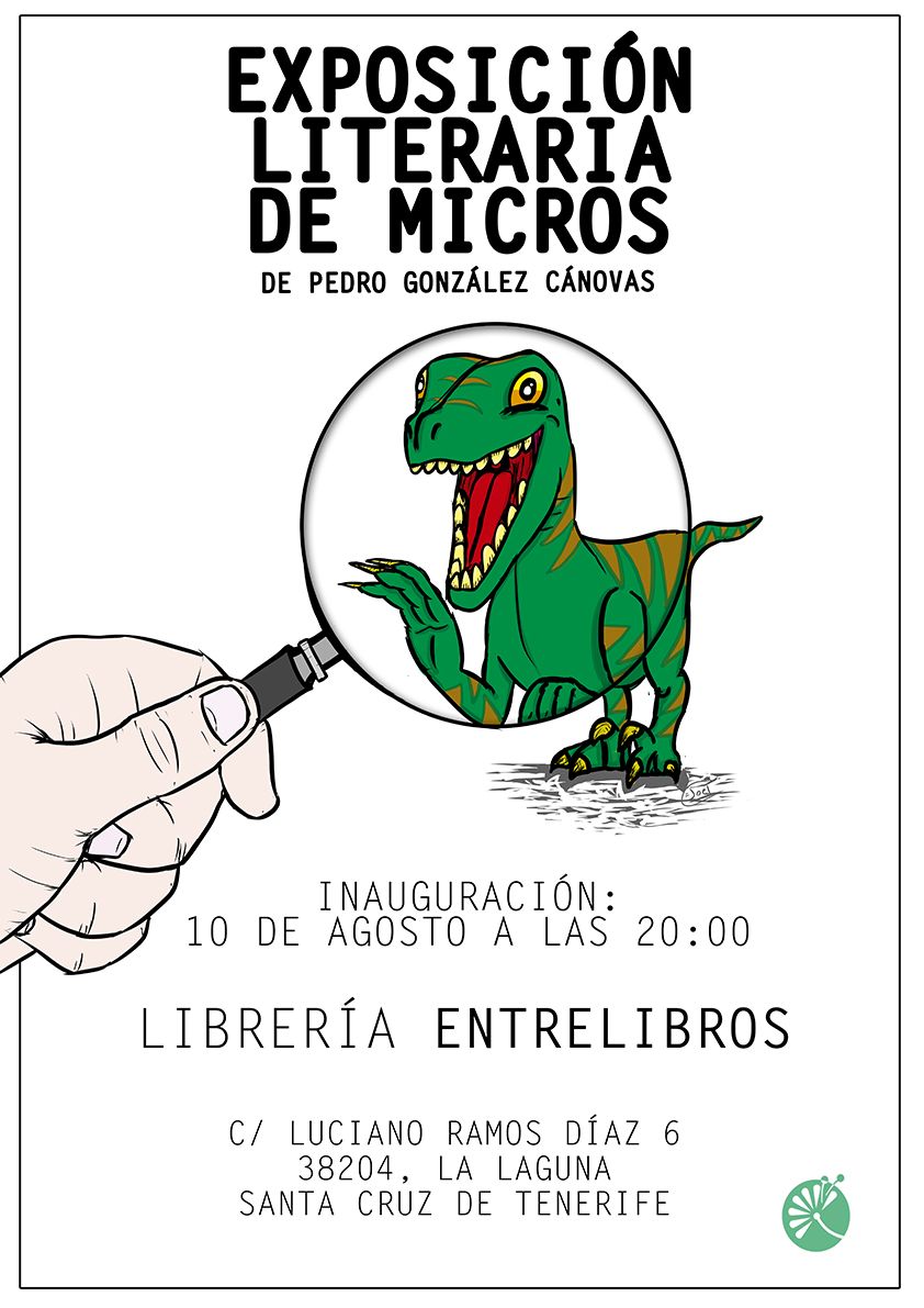 La exposición contiene una docena de microcuentos y microrrelatos impresos que rotarán en el local lagunero durante 15 días, a partir del mismo día 10 de agosto. Esperamos que esta nueva rama de muestra artística de buen resultado y nuestro colaborador siga creando, al menos, al ritmo que lo ha hecho hasta ahora.