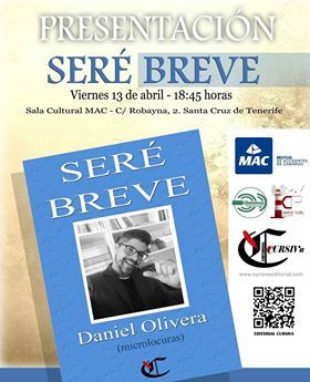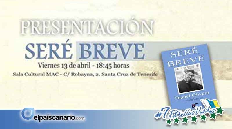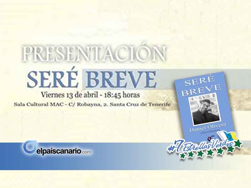 El profesor y escritor tinerfeño Daniel Olivera (Santa Cruz de Tenerife, 1971) presentará su último trabajo, Seré breve (Cursiva Editorial), el viernes 13 de abril en la sala MAC de Santa Cruz. El humor es la piedra angular de las 100 piezas que conforman este libro de microrrelatos muy cortos y microlocuras, pero, más que con la metáfora, la comicidad se establece con las asociaciones de palabras por similitud fonética, destacando los juegos de palabras y los dobles sentidos que permiten proyectar sobre lo escrito un más allá, un espacio elíptico que completa el lector. A veces, los referidos juegos de palabras parten de la reinvención de tópicos, expresiones hechas o refranes.