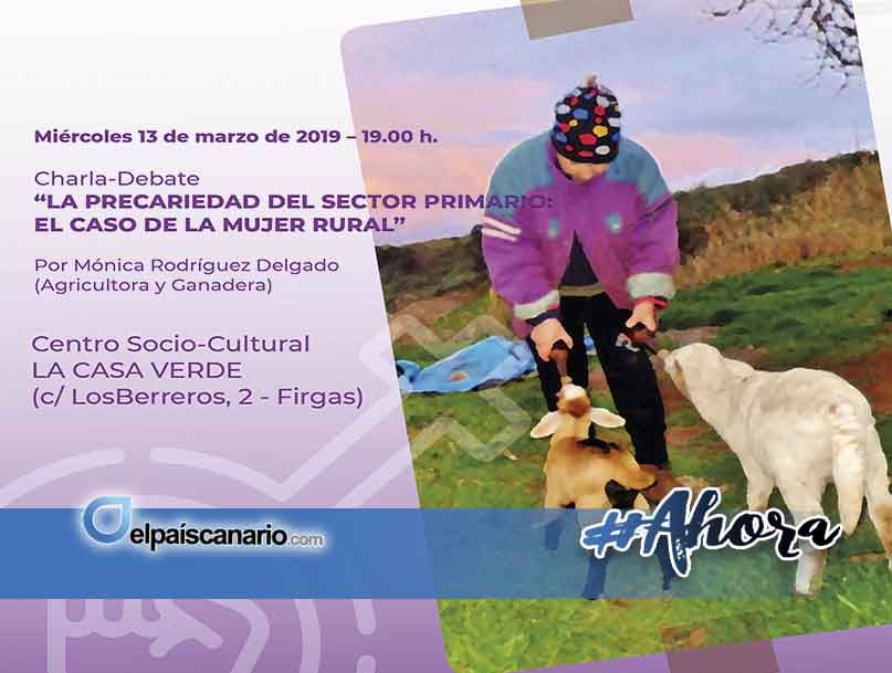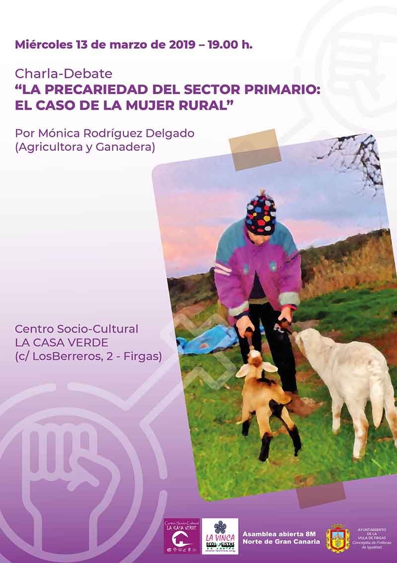 El Centro Socio-Cultural LA CASA VERDE de Firgas (c/ Los Berreros, nº 2) acoge el próximo miércoles 13 de marzo de 2019, a las 19.00 horas, la Charla-Debate “LA PRECARIEDAD DEL SECTOR PRIMARIO. EL CASO DE LA MUJER RURAL”, donde Mónica Rodríguez Delgado, Agricultora, Ganadera y Quesera ecológica nos contará sus experiencias.