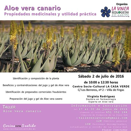 El próximo viernes 17 de junio, a las 9.00 horas, se abre el plazo de inscripción para el Taller de “ALOE VERA CANARIO. PROPIEDADES MEDICINALES Y UTILIDAD PRÁCTICA”, y las personas interesadas en asistir al mismo pueden inscribirse llamando al teléfono 651 352 166 (Comisión de Formación de La Vinca EeA).