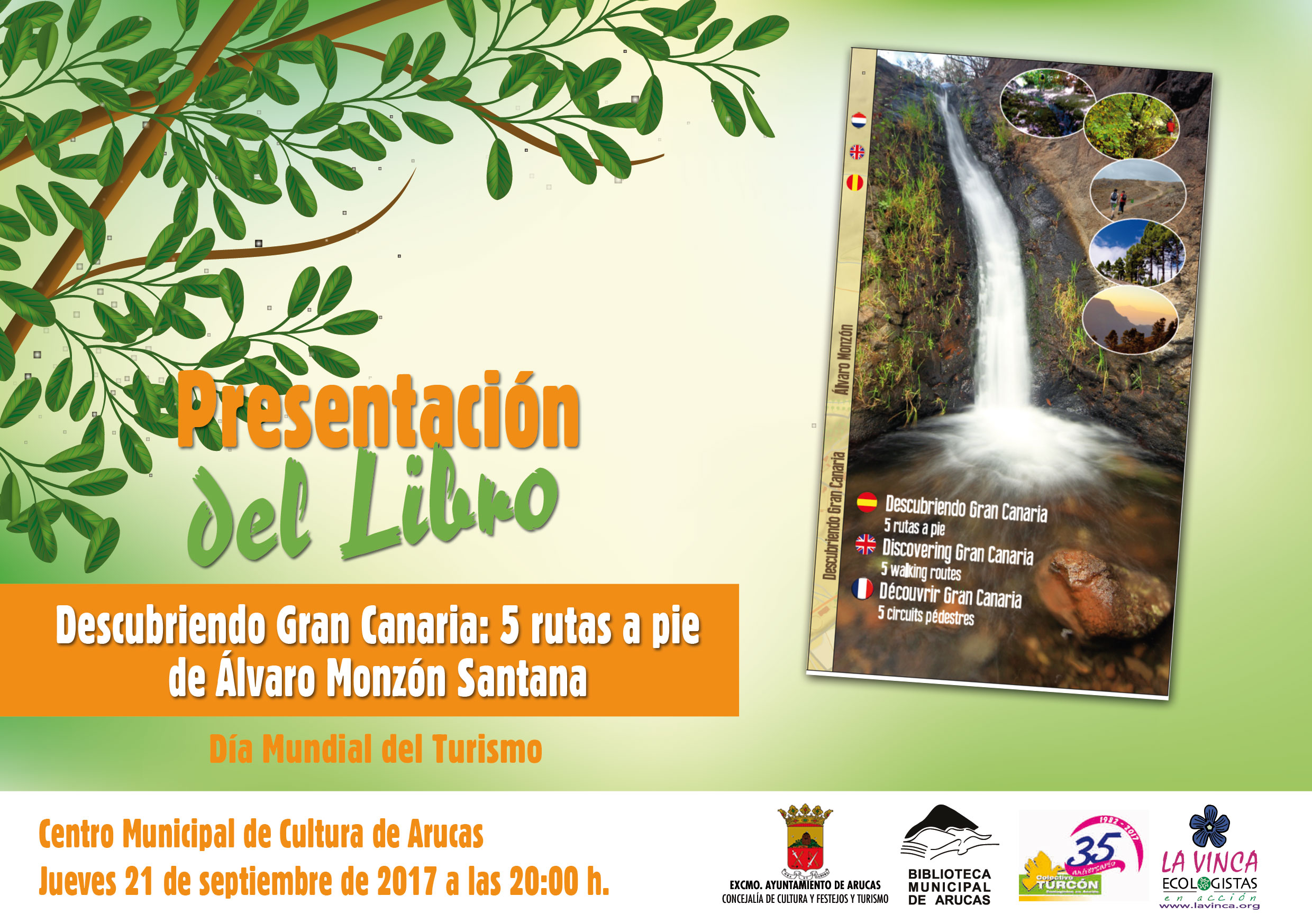 El próximo jueves, 21 de septiembre de 2017, a las 20.00 horas, tendrá lugar en el Centro Municipal de Cultura de Arucas la presentación del último libro de Álvaro Monzón Santana, escritor e integrante del colectivo Turcón Ecologistas en Acción, que lleva por título “Descubriendo Gran Canaria: 5 Rutas a pie”.