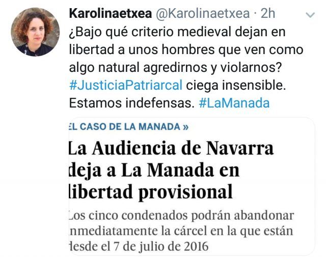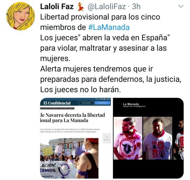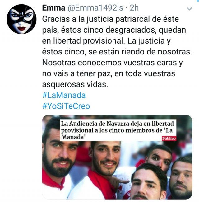 El decreto de libertad provisional, con fianza de 6.000 euros, para la Manada ha caído como un jarro de agua fría sobre la ciudadanía. Las reacciones no se hicieron esperar desde que se conoció la noticia y la indignación empezó a recorrer las redes.