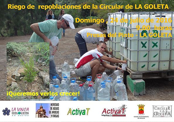 Por cuarto año consecutivo, y en cumplimiento de la autoimpuesta Huella Ecológica de la carrera de montaña Circular de La Goleta, la asociación deportiva “ActívaT”, en colaboración con La Vinca Ecologistas en Acción, la Heredad de Aguas de Arucas y Firgas y el Ayuntamiento de Arucas, organizará el domingo 24 de julio, a las 9.00 horas, una actividad de riego y, reparación de pocetas de los centenares de plantas de bosque termófilo repobladas en la zona de las Presas del Pinto.