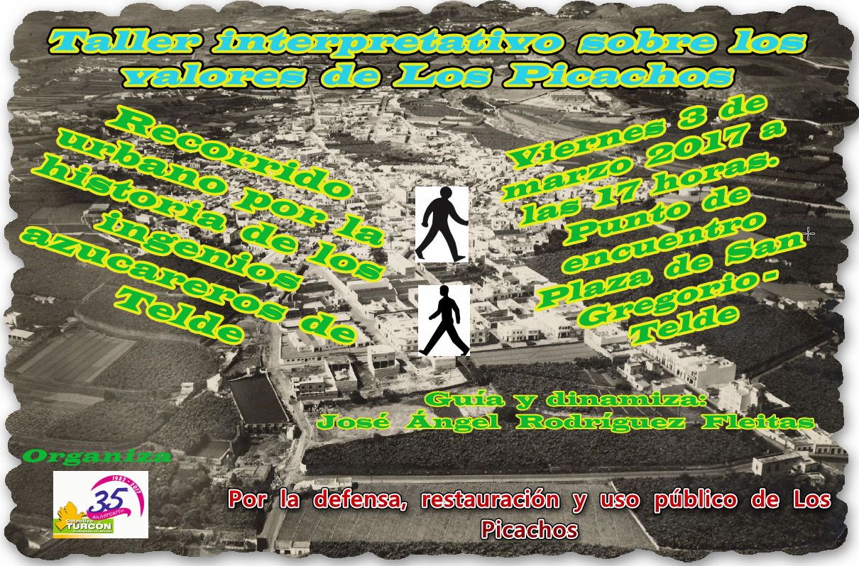 Este recorrido forma parte de un Taller interpretativo sobre los valores de Los Picachos, junto con la charla «Los valores históricos, culturales y económicos de los ingenios azucareros de Telde» organizados por el Colectivo Turcón Ecologistas en Acción con motivo del 23 aniversario del derrumbe parcial de los restos de Los Picachos, para sensibilizar a la opinión pública del valor patrimonial de estos restos y demandar de las administraciones públicas su efectiva conservación y restauración.