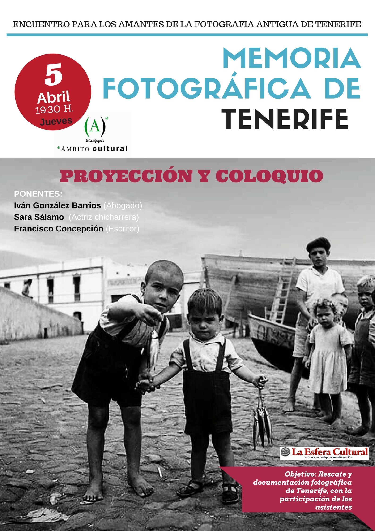 La asociación cultural La Esfera, organiza el próximo Jueves 5 de abril, a las 19.30h, en el Corte Inglés de Santa Cruz, un coloquio/debate titulado “Memoria fotográfica de Tenerife”.