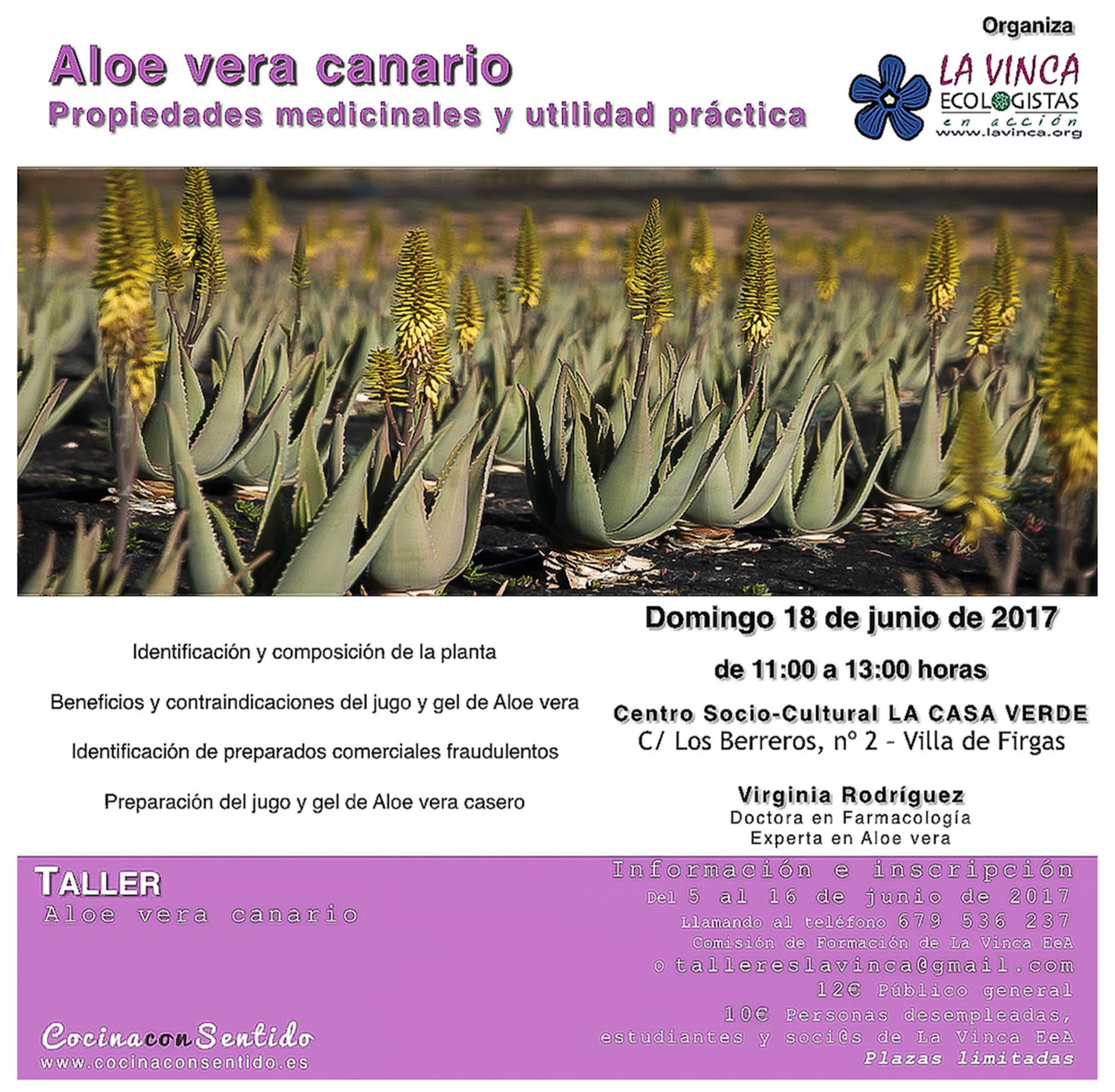 El próximo lunes 5 de junio de 2017, a las 9.00 horas, se abre el plazo de inscripción para el Taller de “ALOE VERA CANARIO. PROPIEDADES MEDICINALES Y UTILIDAD PRÁCTICA”, y las personas interesadas en asistir al mismo pueden inscribirse llamando al teléfono 679 536 237 (Comisión de Formación de La Vinca EeA) o por correo electrónico a: tallereslavinca@gmail.com