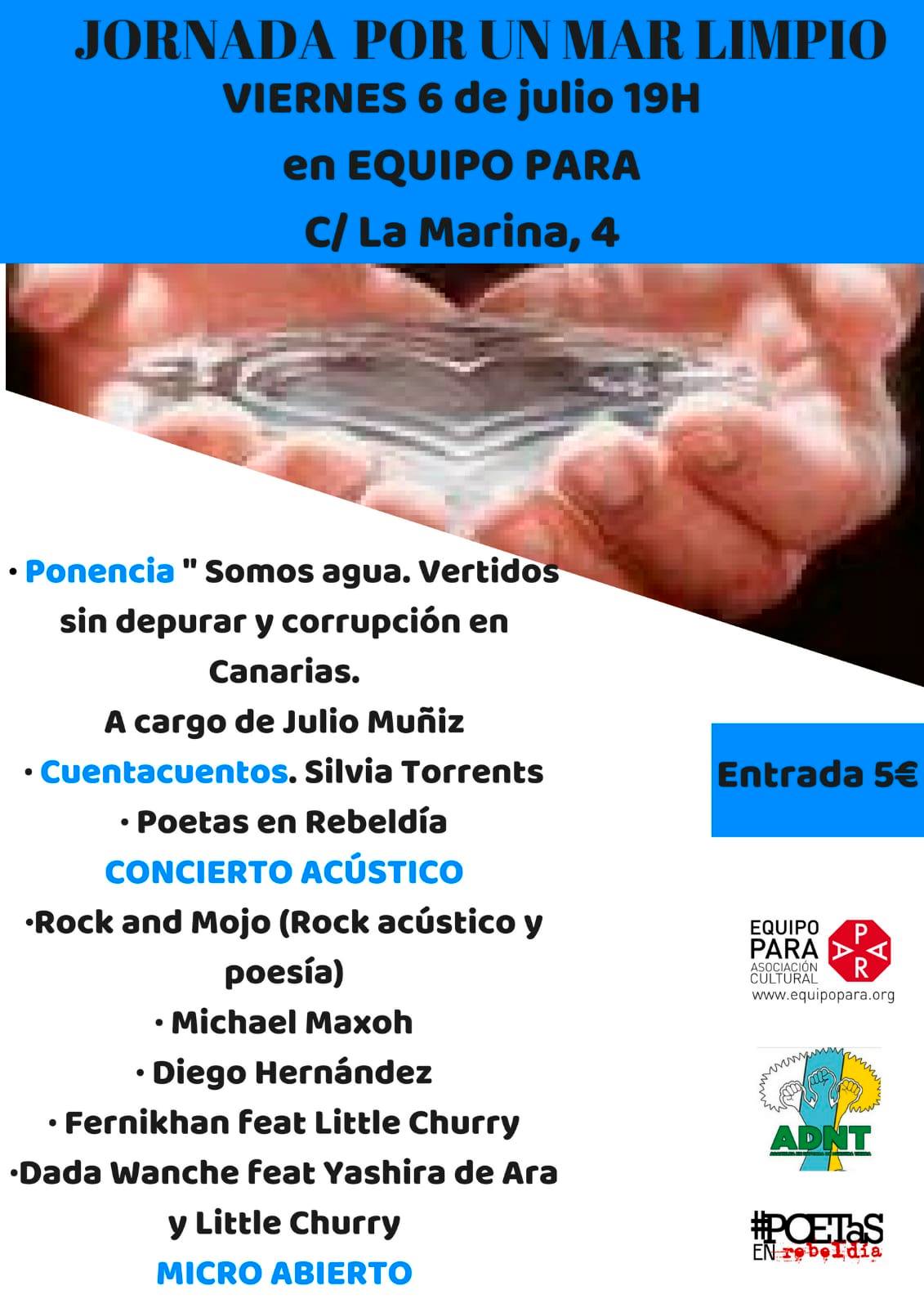 Se trata de una charla, recital y concierto solidario para reunir los fondos necesarios que permitan financiar las campañas informativas con las que este año, y particularmente este verano, recorrerán los puntos de la costa con mayor afluencia para “concienciar sobre lo que está pasando con el agua en Canarias”.