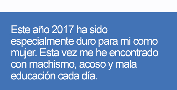 Este año 2017 ha sido especialmente duro para mi como mujer. Esta vez me he encontrado con machismo, acoso y mala educación cada día.