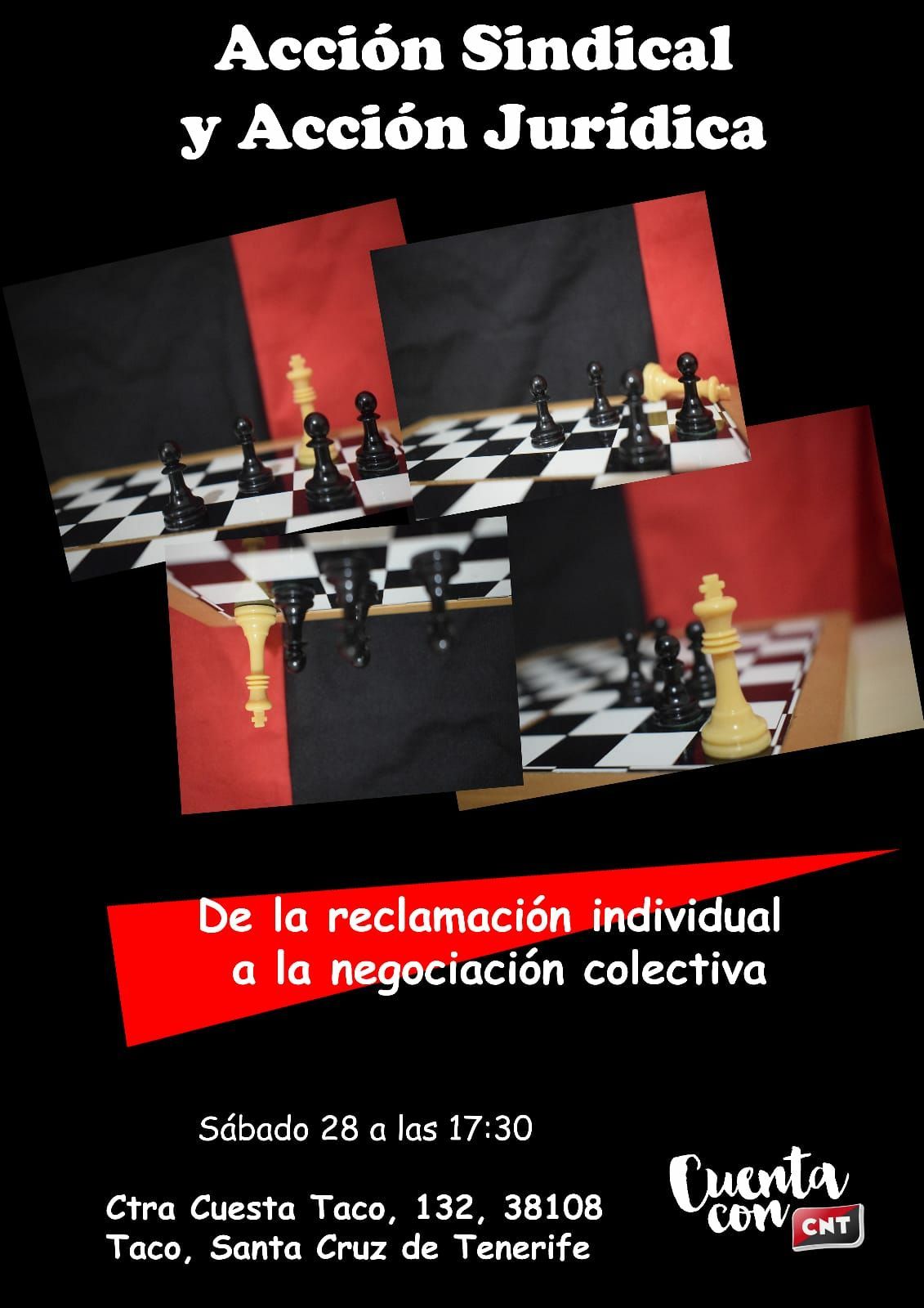 El próximo sábado 28, a las 17:30 horas, CNT-Tenerife organiza un acto formativo en su local de Taco. El objetivo es dotar de herramientas que permitan evaluar las diferentes situaciones que se pueden dar en el ámbito sindical.