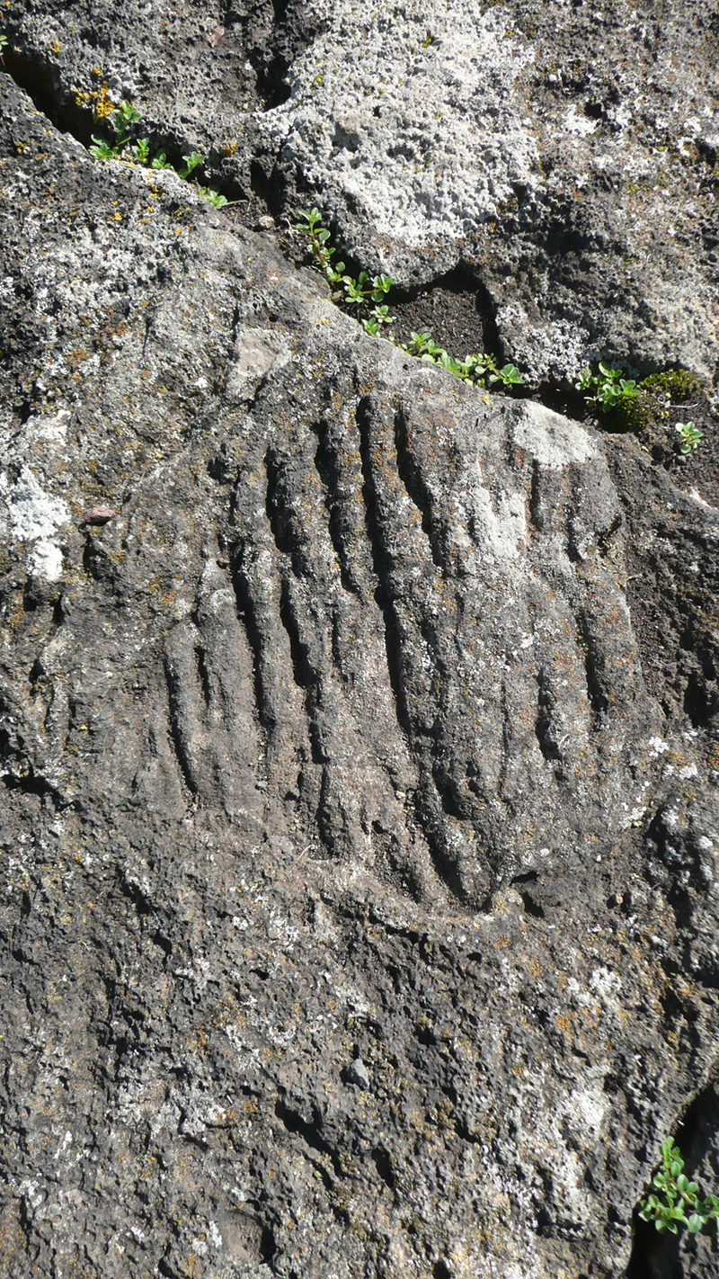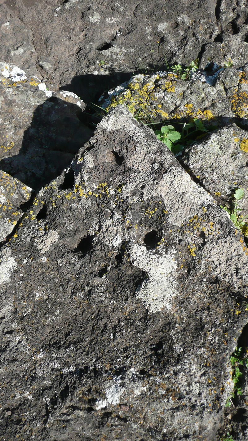 Quedamos muy sorprendidos al advertir el elevado número de pequeñas cazoletas, algunas casi microscópicas, sin parangón en toda Canarias, dispersas por la superficie de la roca tanto de manera aislada como formando grupos. No existen canales artificiales, pero si un buen número de grietas naturales que fueron aprovechadas para labrar cazoletas en medio y utilizarlas como carriles para que transitara el líquido utilizado en los rituales.