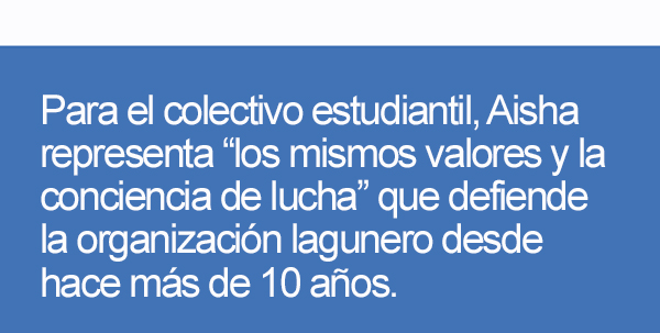Para el colectivo estudiantil, Aisha representa “los mismos valores y la conciencia de lucha” que defiende la organización lagunero desde hace más de 10 años. De esta forma, consideran que la «persecución» que sufre la joven es “la respuesta de un sistema que solo mantiene su poder, perdido el consenso, por medio de la represión a las personas y grupos que están dispuestos a denunciar y criticar la terrible situación que sufre gran parte de la población de las Islas”.