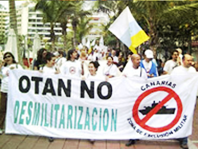 Desde ANC nos oponemos al uso de Canarias como plataforma de entrenamiento y agresión al continente africano, a la existencia de un bloque militar propio de otra época y con un oscuro historial, y apostamos por ser un territorio de paz mediante un estatuto de neutralidad.