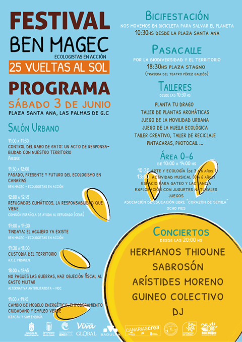 La federación Ben Magec- Ecologistas en Acción cumple este 2017 un cuarto de siglo de andadura defendiendo el patrimonio natural y cultural de las islas. Para celebrarlo ha querido aprovechar la efeméride del Día Mundial del Medio Ambiente para ofrecer un programa de actos ambientales, culturales y de ocio durante todo el día del sábado, en el que participarán los diferentes colectivos federados y diversas entidades públicas y sociales.
