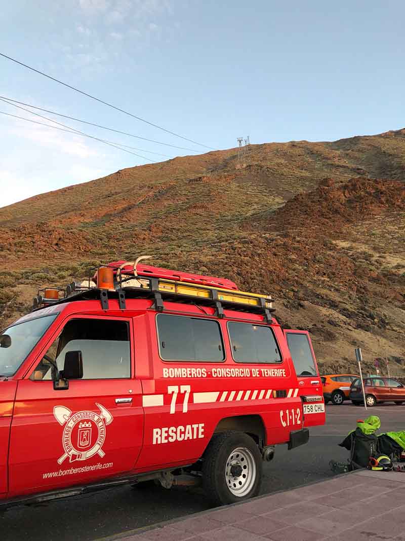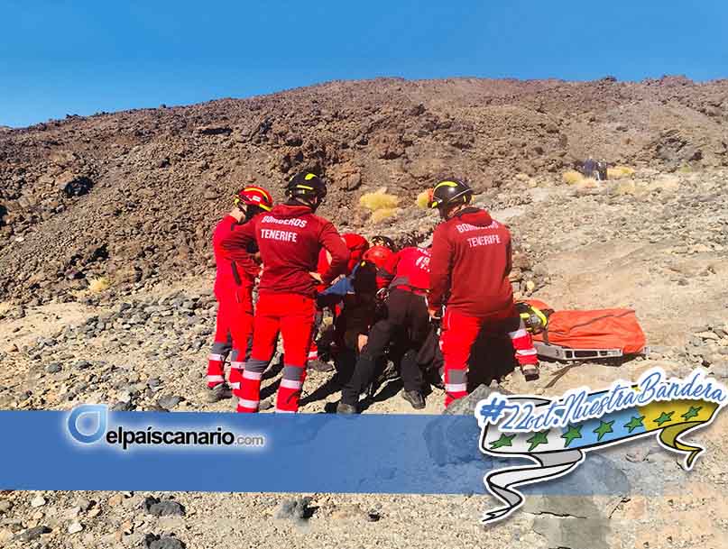 Efectivos del Consorcio Insular de Bomberos de Tenerife, con base en el parque de La Orotava, intervinieron a primera hora del jueves en el rescate de un senderista que sufrió un esguince de tobillo en la zona del refugio de Altavista, en el Parque Nacional del Teide.