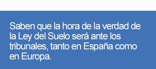 Saben que la hora de la verdad de la Ley del Suelo será ante los tribunales, tanto en España como en Europa.