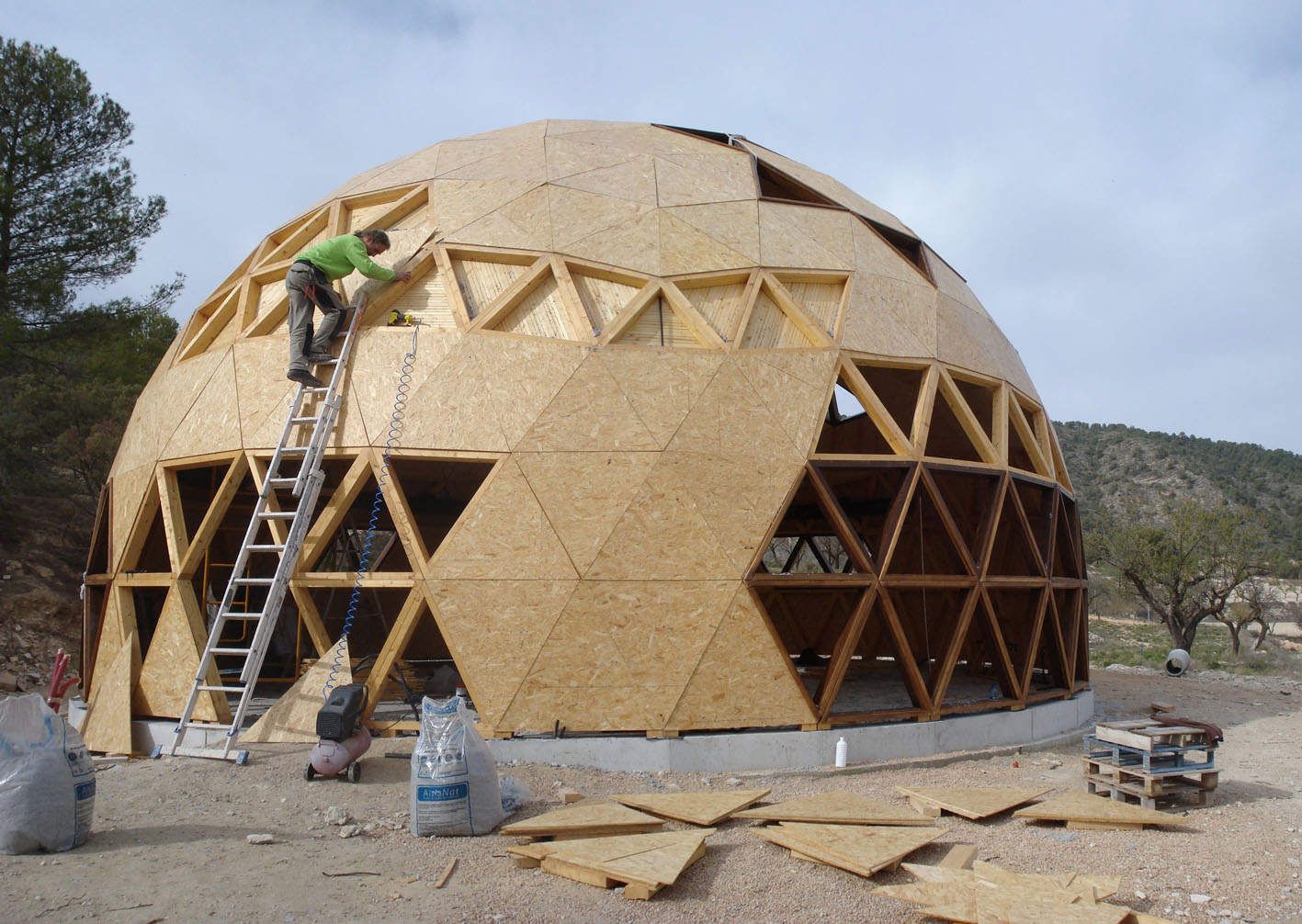 – Cúpulas Geodésicas: Se compone por la unión de elementos poligonales construidos con material ligero, que permite techar espacios amplios sin utilizar soportes. Tiene gran uso para invernaderos e incluso casas de amplio espacio interior.