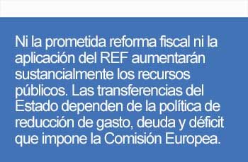 Ni la prometida reforma fiscal ni la aplicación del REF aumentarán sustancialmente los recursos públicos. Las transferencias del Estado dependen de la política de reducción de gasto, deuda y déficit que impone la Comisión Europea.