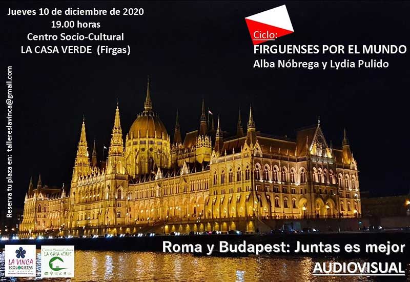 La sesión se desarrollará el jueves 10 de diciembre de 2020, a las 19.00 horas, en el Centro Socio-Cultural LA CASA VERDE de Firgas, (c/ Los Berreros, nº 2) con la Charla-Audiovisual “ROMA Y BUDAPEST: JUNTAS ES MEJOR”.