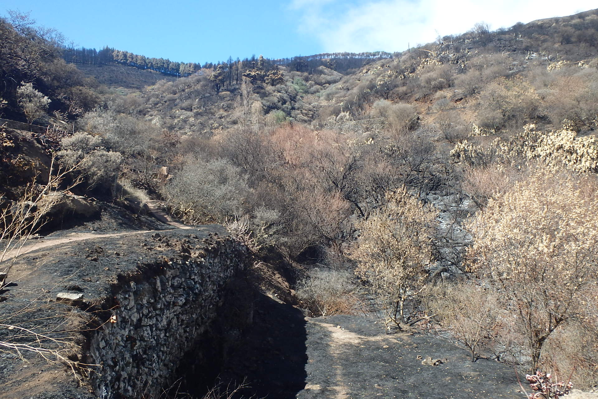 El 80% de la cabecera del barranco de La Mina, arrasada