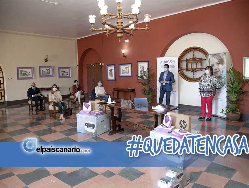 El presidente del Cabildo, Pedro Martín, y la consejera de Acción Social y presidenta del Instituto Insular de Atención Social y Sociosanitaria (IASS), Marián Franquet, han entregado hoy una dotación de material informático a las seis entidades que gestionan los centros de protección de menores de la isla, para facilitar a los niños y niñas el seguimiento del curso escolar, tras la suspensión de las clases presenciales en los centros educativos.