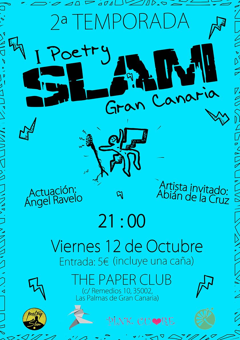 La segunda temporada del Poetry Slam Gran Canaria dará su pistoletazo de salida el viernes 12 de octubre a las 21:00 horas, con el primer certamen de la temporada. Esta vez, la cita será en un nuevo escenario, The Paper Club, situado en el histórico barrio de Vegueta en Las Palmas de Gran Canaria.
