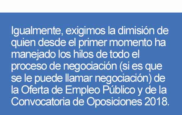 Ante tanto despropósito, al STEC-IC no le cabe la menor duda de que los responsables de este desastre no deben continuar al frente de la Consejería de Educación ni un día más y, por tal motivo, exige la inmediata dimisión de la Sra. Soledad Monzón, Consejera de Educación y Universidad, como máxima responsable de esta situación que avergüenza a toda la comunidad educativa de Canarias y nos convierte en el hazmerreír de todo el estado. Igualmente, exigimos la dimisión de quien desde el primer momento ha manejado los hilos de todo el proceso de negociación (si es que se le puede llamar negociación) de la Oferta de Empleo Público y de la Convocatoria de Oposiciones 2018. Nos referimos al Sr. David Pérez-Dionis, Viceconsejero de Educación, quien ha relegado a un papel irrelevante al Director General de Personal, a quien por lógica debería corresponderle esta negociación.