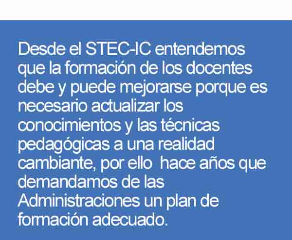 Desde el STEC-IC entendemos que la formación de los docentes debe y puede mejorarse porque es necesario actualizar los conocimientos y las técnicas pedagógicas a una realidad cambiante, por ello hace años que demandamos de las Administraciones un plan de formación adecuado. Pero rechazamos que la docencia se convierta en una carrera de obstáculos como pretende el Gobierno Estatal y que ponga el acento de las carencias de la Educación Pública, no en las políticas llevadas a cabo por el propio Gobierno, sino en el profesorado, es decir, en aquellos que con su vocación y profesionalidad han logrado mantener el sistema educativo público del abandono y la falta de financiación de la última década.