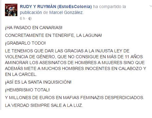 “¡Millones de euros en mafias feminazis desperdiciados!”, otra de las perlas que comparten Rudy y Ruyman en su página de Facebook.