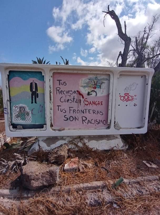 “Canarias ha quedado convertida en una colonia de explotación turística, donde una minoría, utilizando a su antojo todos los recursos que ofrece el Archipiélago, maximiza sus beneficios sin tener en cuenta ningún tipo de sostenibilidad. Solo tenemos que visitar alguno de los abundantes epicentros del desenfreno inmobiliario turístico para verificar las huellas que deja la destrucción: la transformación (destrucción) de una identidad paisajística y telúrica; el desplazamiento de la población local; y la sumisión absoluta de las expectativas laborales del común a ese modelo de explotación colonial. El espacio turistificado supone —dentro de este modelo de colonia de explotación— una auténtica regresión a la peor de las dependencias, puesto que destruye la posibilidad de replantear el espacio colonizado y la reutilización de los posibles recursos generados. Solo tenemos que verificar el aspecto fantasmagórico —postapocalíptico— de la ciudad turística en medio de la pandemia. El capital fijo, en la colonia turística, no deja de ser yeso y cartón piedra, todo amenaza inestable, como un decorado ruinoso y sombrío. Todo se muestra consumido y agotado. Un territorio improductivo sembrado de estructuras inútiles. Las imágenes de esos centros turísticos sin visitantes, con instalaciones y negocios cerrados, son el mejor testimonio de lo que decimos”.