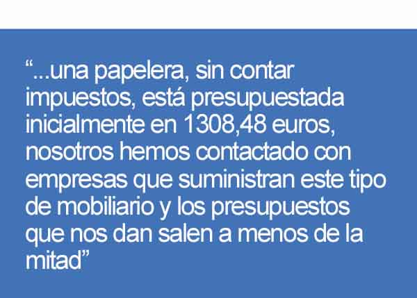 Desde el movimiento ciudadano también reclaman una explicación por el coste tan elevado del mobiliario urbano presupuestado: “una papelera, sin contar impuestos, está presupuestada inicialmente en 1308,48 euros, nosotros hemos contactado con empresas que suministran este tipo de mobiliario y los presupuestos que nos dan salen a menos de la mitad”, aclaran desde la plataforma. “Se ha dicho que la propuesta alternativa a la tala del Laurel iba a tener sobrecostes, no solo no es cierto porque nos ahorramos el dinero que hay que emplear para talar el árbol, sino que además les facilitaremos los presupuestos y datos de las empresas para que comprueben que hay mobiliario urbano con las mismas prestaciones de calidad y a precios mucho más baratos que los presupuestados”, concluyen desde el “Salvemos el Laurel de El Calvario”.