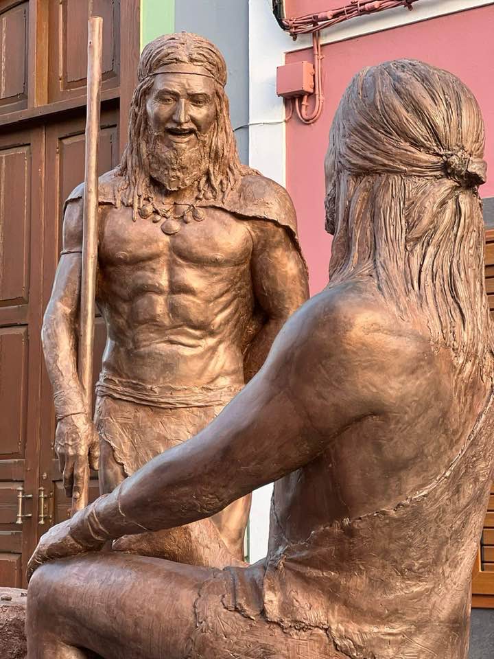 Gáldar honra a sus Guaires con dos grupos escultóricos en la calle que lleva su nombre