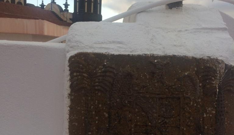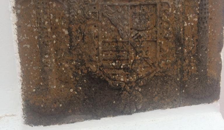 Pero también puede señalarse un elemento bastante curioso que posiblemente date de alguna etapa anterior: se trata de un blasón de cantería muy rico en detalles que bien merecería un estudio o investigación.