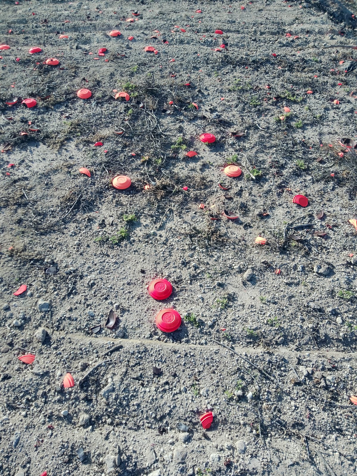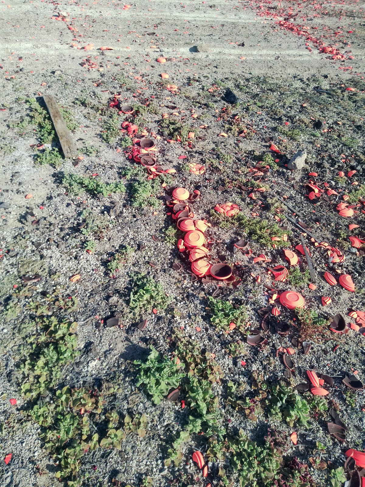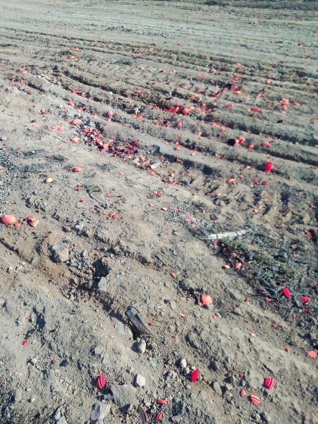 Las imágenes del resultado sobre el terreno de esta prueba de tiro al plato, celebrada finalmente en una nueva ubicación, hablan por sí solas. Especies vegetales dañadas, residuos de platos dispersos en miles de pedazos de todos los tamaños afectando incluso a la pista agrícola; cartuchos y tapones de contención plásticos; o el plomo de los perdigones contaminando el suelo; son algunos de los daños que acaban afectando al ciclo natural de esos frágiles espacios con desechos, que por mucho que aleguen los organizadores, no tienen nada de “eco amistosos” y que sin duda afectan al paisaje, convirtiéndolo en un espacio degradado visual y medioambientalmente.
