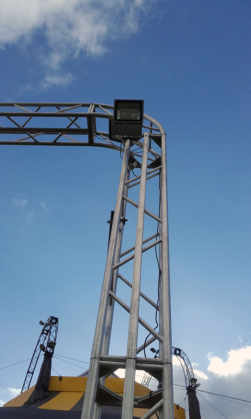 Según esta organización: “se aprecian, a simple vista, defectos de seguridad”; señalando que el arco de entrada “carece de bases compactas que soporten dicha estructura de aluminio, puesto que una de las patas está calzada sobre un bloque de hormigón y la otra directamente sobre la tierra”. Asimismo, “existe una torreta de focos situada a la izquierda del recinto desplegada sin ninguna medida de seguridad, solo la han bloqueado la carraca de izado con una cuerda, el cable tirado por el suelo y ninguna valla colocada para delimitar la zona”, y en el puente de entrada “los focos están conectados a una regleta domestica sin ser estanca ni cumplir con las normas de seguridad”.